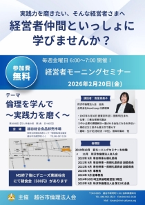 倫理法人会は、純粋倫理の実践によって自己革新をはかり、健全な繁栄をめざす経営者の集まりです。